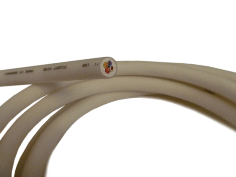 Акустический кабель Silent WIRE LS5 (Германия) состоит из четырёх концентрически расположенных многожильных проводников сечением 1,5 мм² каждый (4/16 AWG) из сверхчистой бескислородной меди 7N OFC (99,99999%) в тефлоновой изоляции различных цветов. Проводники соединены попарно по схеме Quad Star, образуя два проводника сечением 3,0 мм² каждый. Внешняя оболочка кабеля изготовлена из белого полиуретана с прозрачным защитным покрытием. Кабель имеет низкий импеданс, очень гибкий и прочный. Звучание кабеля характеризуется ясной и четкой звукопередачей во всем диапазоне частот.