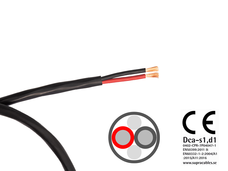 Акустический кабель Supra SKYFLEX 2X4.0 FRHF BLACK B75 состоит из двух проводников, сплетенных из тонких 315 жил толщиной 0,127 мм каждый, выполненных из бескислородной меди высокой степени очистки OFC 5N. Кабель помещен в трудновоспламеняемую безгалогенную оболочку FRHF PE (Flame Retardant & Halogen Free), которая обладает хорошей гибкостью и прочностью. Такая оболочка отличается химической устойчивостью к минеральным маслам, щелочам, растворителям и различным кислотам и защищает проводники от процессов окисления и механических повреждений. SKYFLEX 2X4.0 FRHF идеальный для установки в общественных зданиях и других областях, где требуются материалы LSZH (Low Smoke Zero Halogen) — торговые центры, кинотеатры, производственные помещения, а также для прокладывания на улице.