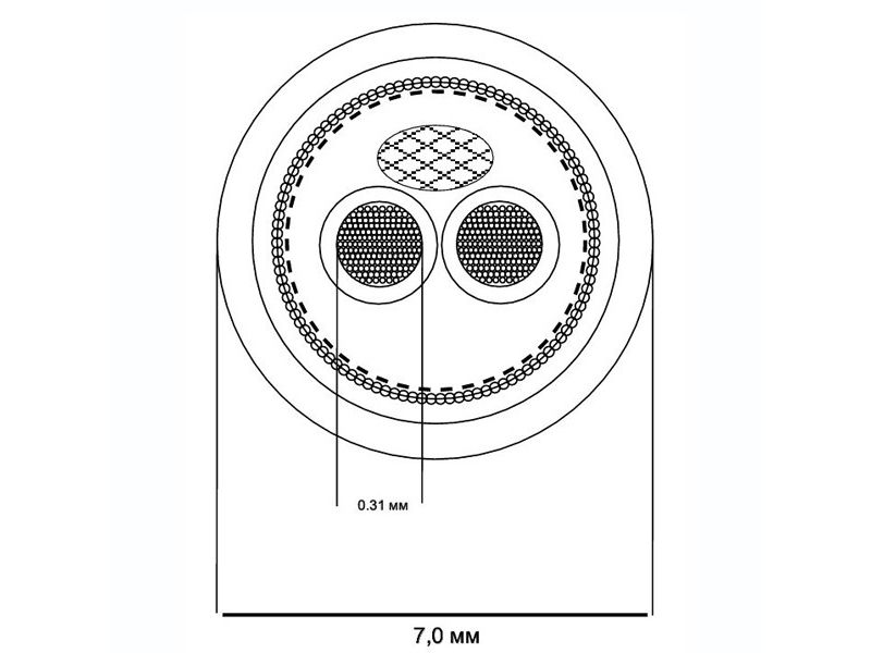 • Экранирование: оплётка из 120 жил и специально обработанная алюминиевая фольга