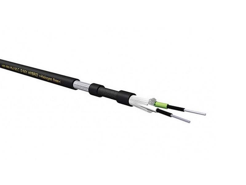 Van den Hul D-501 Hybrid представляет собой очень гибкий симметричный кабель черного цвета. Два центральных проводника скручены из 19 жил, изготовленных из высококачественного материала MC OFC (Matched Crystal Oxygen Free Copper — бескислородной меди с согласованной кристаллической структурой) с очень плотным покрытием из серебра высокой степени очистки. Поверх каждого центрального проводника имеется дополнительный слой, насыщенный LSC (Linear Structured Carbon® — линейно-структурированным углеродом). Такой слой значительно повышает качество передачи сигнала за счет создания электрических связей на микроуровне и преобразования внешнего магнитного поля вокруг проводника обратно в электрический сигнал.