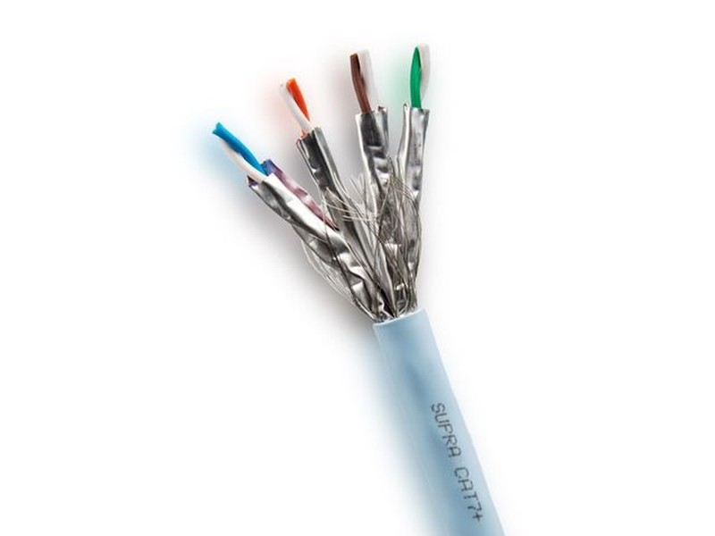 Supra CAT 7+ превосходит спецификацию сетевых кабелей категории Cat 7А, имеет отличный показатель NEXT (Near End Crosstalk — переходное затухание двунаправленной передачи), обладает малым затуханием, эффективным экранированием каждой пары отдельно и всех вместе (так называемый SSTP). Пропускная способность кабеля Supra CAT 7+ составляет 1300 MHz. Конструкция кабеля состоит из 4-х пар моножильных медных проводников сечением 0,26 мм²/23AWG с пенополиэтиленовой изоляцией и экранированием от электрических и магнитных наводок. Благодаря этому сохраняется высокое качество передачи информации и минимизируются потери.