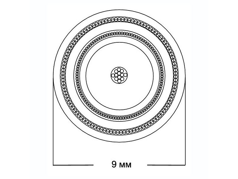• Сечение: центральный проводник 0,673 мм² (19 AWG); средний проводник 2,59 мм² (13 AWG); внешний экран 2,96 мм² (12,5 AWG)