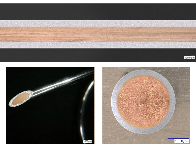 Разработанный и произведенный FCM Corporation, дочерней компанией Furukawa Electric Co., в сотрудничестве с японской компанией Promotion Works Inc., проводник PC-Triple C/EX (Pure Copper Continuous Crystal Construction/Extra) имеет двухслойную конструкцию и состоит из центральной сверхплотной кованой медной жилы PC-Triple C (99,996%), вокруг которой обернута трубка из ультрачистого серебра 5N. Такая конструкция более эффективна, чем обычное покрытие меди серебром, поскольку толщина покрытия серебра составляет всего 1-2 мкм, а структура не обладает плотным кристаллическим зерном. Кроме того, в посеребренных проводниках происходит взаимопроникновение атомов серебра и меди на границе раздела, что приводит к менее однородной поверхности проводника и возрастанию скин-эффекта. Проводник нового поколения PC-Triple C/EX сочетает в себе высокую проводимость серебра и стабильность электрических характеристик монокристаллической меди PC-Triple C, обеспечивая сверхширокополосное воспроизведение звука и рекордную проводимость 105% IACS (International Annealed Copper Standard).