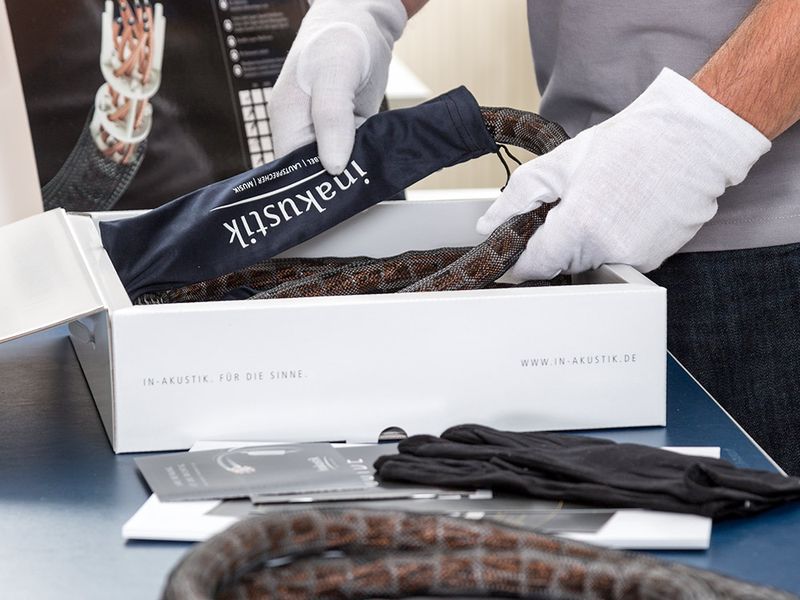 Как и все акустические и межблочные кабели серии Referenz Selection, LS-2404 AIR полностью произведен и собран вручную на собственном заводе In-Akustik в Германии.