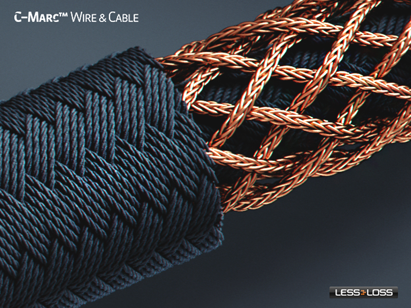 Литовская компания LessLoss Audio выпустила новую серию кабелей, изготовленных по запатентованной технологии C-MARC™ (Common Mode Auto-rejecting Cable) и предназначенных для эффективного подавления электромагнитных помех, наводок и шумов. Эти кабели – результат более чем шести лет исследований, разработок и тестирования. Они представляют собой особый тип литцендрата, обладающий всеми преимуществами по сравнению с обычными неизолированными проводниками, но без недостатка, обусловленного возникновением собственных резонансов, вызванных стандартной конфигурацией свивки проводников.