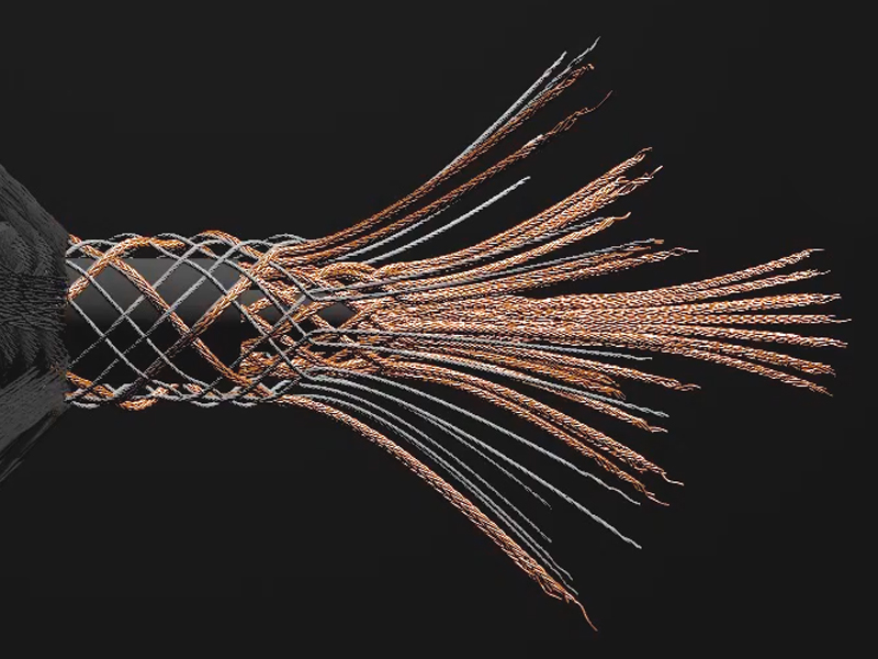 Внутренняя структура кабелей LessLoss Audio C-MARC состоит из специального плетения проводников, часть которых наматывается по часовой стрелке, тогда как вторая часть – против нее с идентичным, точно рассчитанным, диаметром проводников и шагом намотки. Таким образом, помехи в противоположных полярностях взаимно компенсируется при объединении двух встречных поляризованных токов посредством электрического контакта на обоих концах провода. Благодаря такой конструкции обеспечивается эффективное подавление внешних помех и наводок, что приводит к получению максимально чистого сигнала. Диаметр медных индивидуально изолированных жил проводов C-MARC составляет всего 0,125 мм, что приравнивается к толщине человеческого волоса. Совокупность всех этих факторов позволила значительно минимизировать скин-эффект.